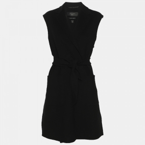 Max Mara Grey Wool Open Front Belted Coat M