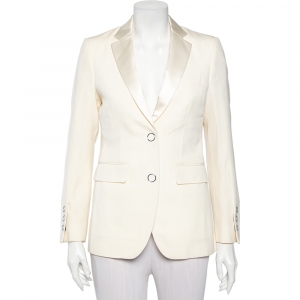 Burberry Grey Wool Epaulette Detail Buttoned Coat S