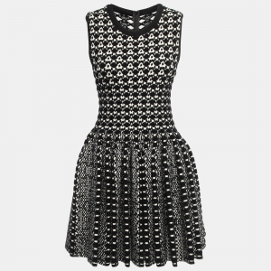 Alaia Black Dotted Lurex Knit Flared Mini Dress S