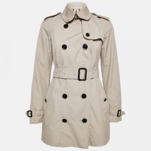 Burberry Stone Beige Gabardine Short Trench Coat S