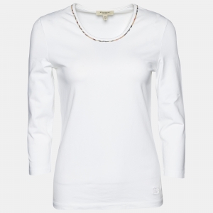 Burberry White Cotton Vintage Checked Half Sleeve T-Shirt M