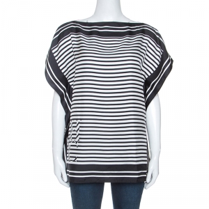 Hermes Navy Blue Printed Silk Kaftan Midi Dress M