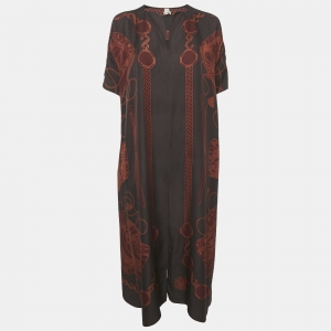 Hermes Red/Brown Printed Jersey Shirt S