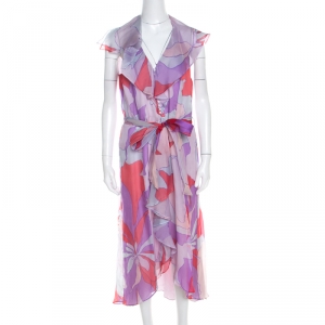 Escada Multicolor Fantasy Print Silk Wrap Bodice Davanee Shirt Dress M