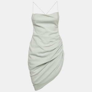 Jacquemus Light Green Cotton and Linen Button Front Cut-Out Mini Dress L
