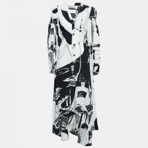 Loewe Black/White Zig Zag Print Crepe Midi Skirt S
