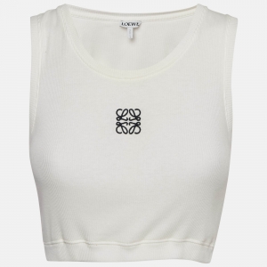 Loewe White Ribbed Knit Anagram Crop Top S