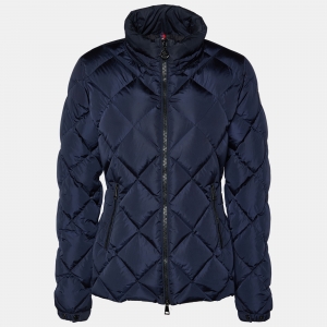 Moncler Navy Blue Quilted Armoise Fur Lined Hooded Down Jacket S