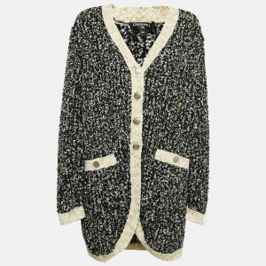 Chanel Off-White Knit Sequin Logo Detail Full Sleeve Sweater L