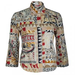 Prada Cream Printed Dolman Sleeve Cropped Blouse M