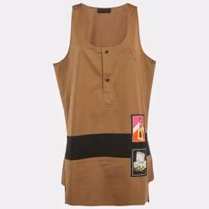 Prada White Striped Cotton Triangle Logo Detail Tank Top XL