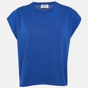Prada Blue Cotton Crew Neck Half Sleeve T-Shirt L