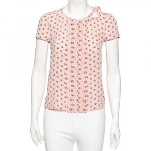 Prada Beige Daffodil Print Silk De Chine Top S