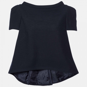 Prada Black Chiffon & Jersey Contrast Detail Midi Dress L