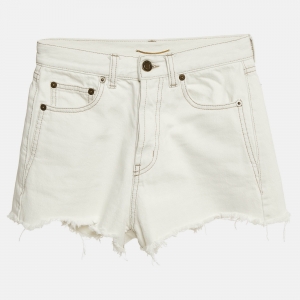 Saint Laurent Paris Cream Striped Wool Tailored Short S