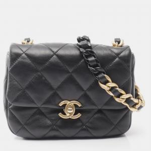 Chanel Black Lambskin Matelasse Coco Mark Flap Bag