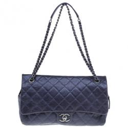 Chanel Navy Blue Quilted Cracked Patent Calfskin CC Flap Bag