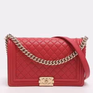 Chanel Red Quilted Caviar Leather Carry Me Top Handle Bag