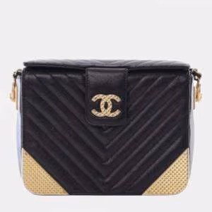 Chanel Black Gold CC Chevron Calfskin Rock The Corners Minaudiere Bag