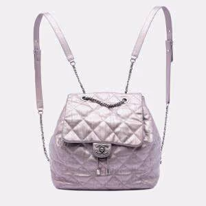 Pre Owned Chanel Beige Iridescent Quilted Lambskin Paris Hamburg Pearl Clutch With Chain
