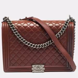 Chanel Red Quilted Leather Medium Chain Around Boy Flap Bag