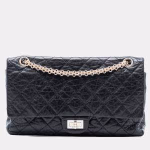 Pre Owned Chanel Black Quilted Aged Calfskin Reissue 2.55 Double Flap 226