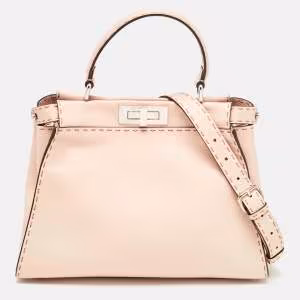 Fendi Peekaboo Beige Leather Shoulder Bag