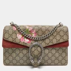 Gucci Beige/Maroon GG Supreme Blooms Print Canvas and Suede Medium Dionysus Shoulder Bag