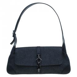Gucci Black Denim And Leather Baguette
