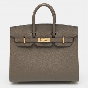 Hermes Gris Etain Epsom Leather Gold Finish Birkin Sellier 25 Bag