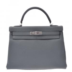 Hermes Bleu Jean Togo Leather Palladium Finish Kelly Retourne 35 Bag