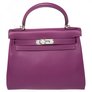 Hermes Purple Epsom Leather Palladium Hardware Kelly 25 Bag
