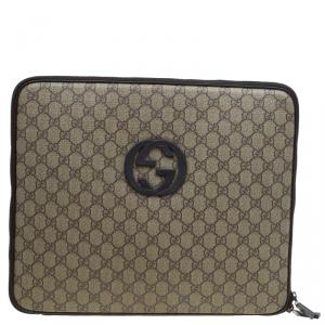 Gucci Beige/Brown GG Supreme Canvas Interlocking Logo Laptop Case