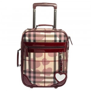 Burberry Burgundy Heart Check Coated Canvas and Patent Leather Trolley Bag