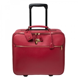Dolce & Gabbana Red Leather Two Wheeled Cabin Luggage