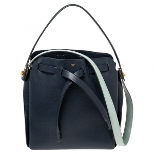 Anya Hindmarch Navy Blue Leather Shoelace Drawstring Bucket Bag