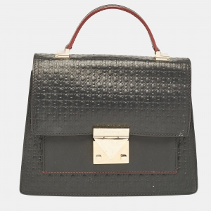 Carolina Herrera Black Embossed Leather Pushlock Flap Top Handle Bag