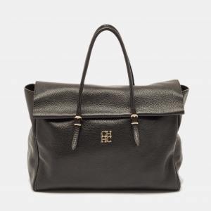 Carolina Herrera Black Monogram Embossed Leather Flap Top Handle Bag