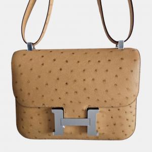 Hermes 24 Constance Tabac Camel Ostrich Leather Bag