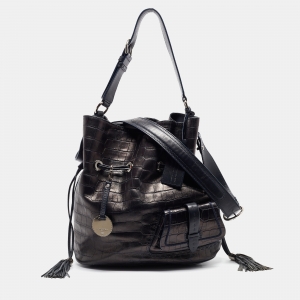 Lancel Black Croc Embossed Leather Premier Flirt Bucket Bag