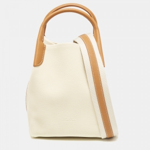 Loro Piana Off White/Brown Leather Small Bale Bucket Bag
