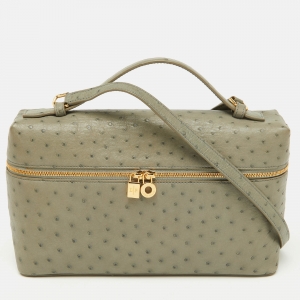 Loro Piana Light Grey Ostrich Extra Pocket L27 Bag