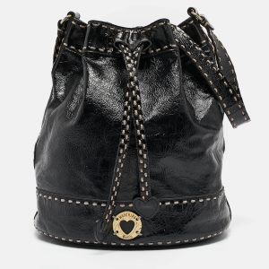 Moschino Black Wild Stitch Patent Leather Drawstring Bucket Bag