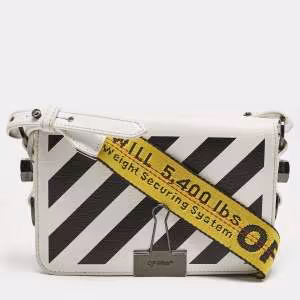 Off-White White/Black Diagonal Print Leather Mini Binder Clip Crossbody Bag
