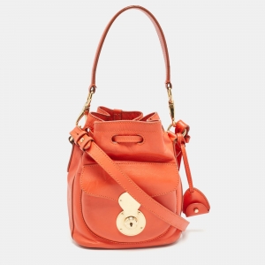 Ralph Lauren Orange Leather Ricky Drawstring Bucket Bag