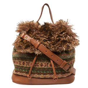 Ralph Lauren Multicolor Faux Fur Flap And Crochet Drawstring Bucket Bag