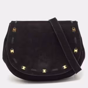 Salvatore Ferragamo Black Suede Logo Flap Crossbody Bag