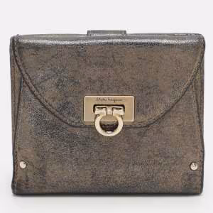 Salvatore Ferragamo Metallic Leather Classic Mediterraneo French Wallet