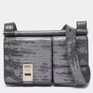Salvatore Ferragamo Lilac/Black Lizard Embossed Leather Multi Pocket Flap Crossbody Bag