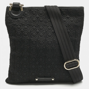 Salvatore Ferragamo Black Gancini Embossed Fabric Flat Messenger Bag